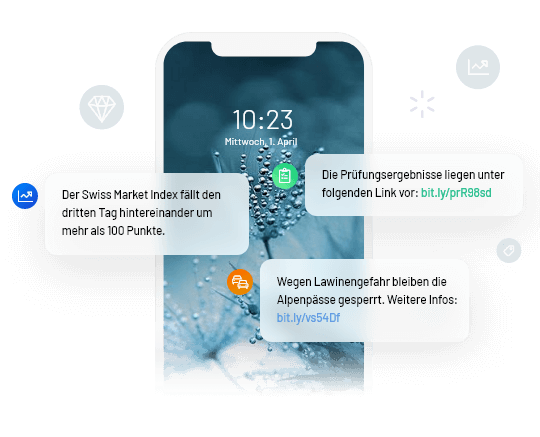 The flood of everyday content via various mediums forces us to consume information selectively. The open rate of text messages on everyday smartphones, however, is many times higher. The tried and tested SMS channel is increasingly being used for important information services, as it is the only one that is available on all mobile devices worldwide.